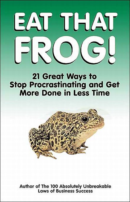 With reference to the title, Tracy defines your “frog” as your most important task, the one you’re most likely to procrastinate on if you don’t do something about it now. It is also the one task that can have the greatest positive impact on your life and your results at the moment. (p. 2) The principle the author seeks to teach is that if you discipline yourself to begin immediately and persist until your biggest and most important task is complete before you go on to something else you can live at the height of productivity hence building your self esteem and ruling out all effects procrastination may have had on you!